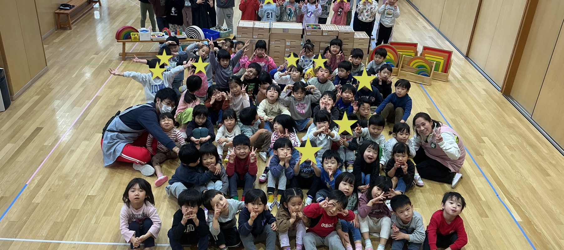 0歳児さんが2階にお散歩をしに行きました。帰りは5歳児と手を繋いで嬉しそうにお部屋に戻って来た時の様子です。この後、お部屋でダンスを一緒に踊ったり、絵本を読んでもらい楽しい時間を過ごしました。「今日も赤ちゃん組に遊びに行きたい!」と朝から楽しみにしている姿も見られます。異年齢交流を通して学ぶことは多く、保育園でしか体験できない事を沢山出来たらなと思います。