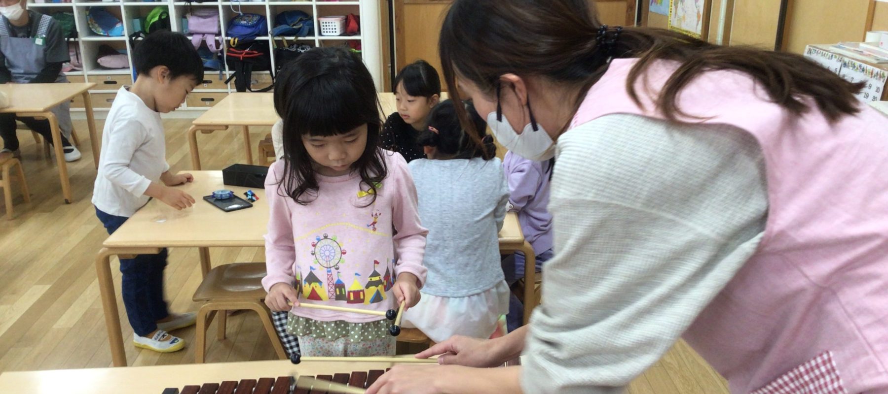 もうすぐ4.5歳さんの発表会があります。やりたい楽器を自分たちで選び自由遊びの時間を使って、自ら真剣な顔で練習しています。間違えてしまった時も友だちに「大丈夫だよ」と優しい声を掛け合う姿が見られ、子どものたちの成長を感じます。